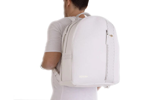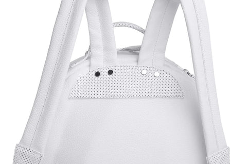 The BeeTennis Cortina backpack is a sporty white leather backpack designed for women who play tennis and paddle but also for sport in general. It is handcrafted in Italy in genuine white leather of quality and design. It is a very roomy sports backpack, it can hold up to 2 tennis rackets in the back pocket, a paddle in the front one and much more. The back pocket is in shockproof isothermal material to protect rackets or other material that you want to carry such as a computer, tablet ... ideal for taking to school or the office and contains a nice white handle cover to hook the racket and keep it in place . The internal compartments are lined and the materials used are robust and of excellent quality.