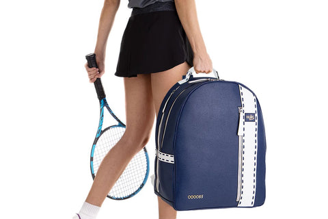 The BeeTennis Portofino backpack is a sporty blue leather backpack designed for tennis and paddle but also for sport in general. It is handcrafted in Italy in quality and design genuine leather. It is a very roomy sports backpack, it can hold up to 2 tennis rackets in the back pocket, a paddle in the front one and much more. The back pocket is in shockproof isothermal material to protect rackets or other material that you want to carry and contains a nice colored handle cover to hook the racket and keep it in position. The internal compartments are lined and the materials used are robust and of excellent quality.