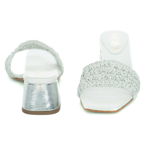 The Sofia sandal is a high-heeled, leather model. It features a wide, crocheted strap with leather thread, which creates a woven and slightly transparent effect. The toe is square, in line with modern trends, offering a minimalist yet elegant look. The insole is also made of leather and bears the ‘EMOBA’ brand name in gold lettering, adding a refined touch to the overall design. This sandal is perfect for a casual-chic look, ideal for the summer season, combining comfort and style with hand-crafted details.