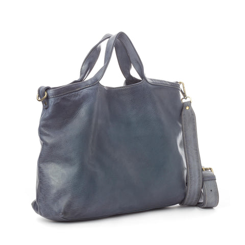 Women's vintage handbag made of soft calf washed leather, artistically dyed using a unique three-dimensional colouring process, Made in Italy. Clip closure, inside pockets and zip pocket, with adjustable shoulder strap. Size: 43l x 11d x 30h