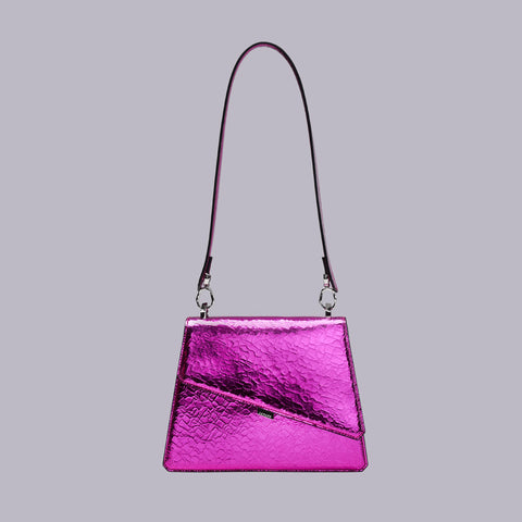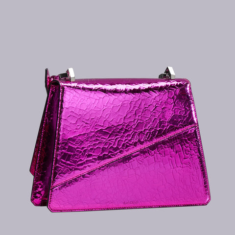 Crust leather bag with pink lambskin interior and palladium galvanized brass hardware