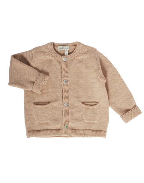 Jacket with pockets, crew neck model with long sleeves. It has a total opening on the front made with elegant Akoya mother-of-pearl buttons. Enriched by the front pockets made in knitting. The jacket was made with the best Pure Merino Wool. Hypoallergenic and thermally insulating, it helps to maintain a stable level of humidity and body temperature between the fabric and the skin, according to studies conducted by the global wool authority, the pure merino component is even therapeutic for children suffering from eczema.