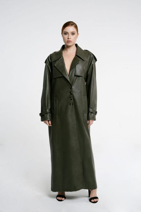 Oversize ecoleather trench coat (55%vi 45%pu).