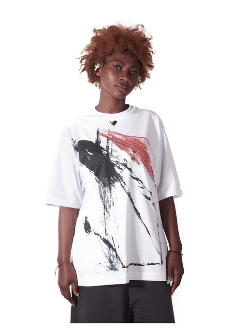 All VSTL t-shirts are handmade in Tuscany produced in limited series. No gender oversized T-shirt cropped, short-sleeved, straight-cut cotton T-shirt that laid flat has the shape of a large T.