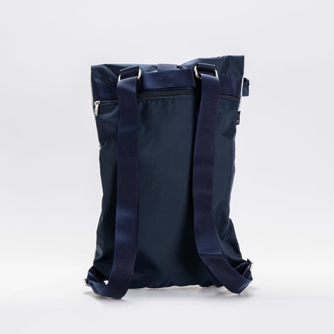 A versatile, flat but capacious backpack, perfect for every occasion. It is closed by rolling up the top, which is secured with a hook to protect the contents from water. An external pocket in contact with the back provides access to things to keep handy but safe. Made from recycled sail and nautical materials. Each piece is numbered internally by hand, on a label which indicates the type of sail and the material used.