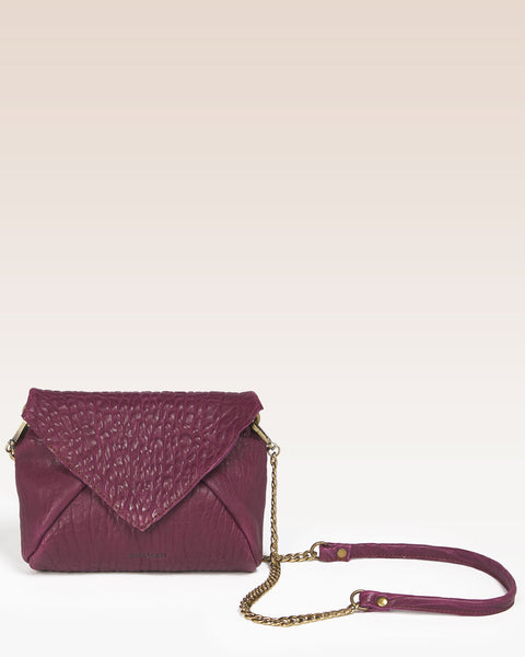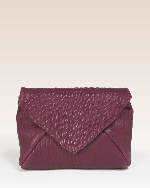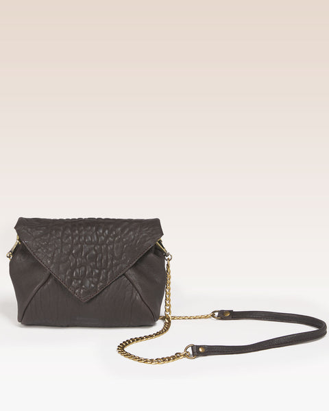 Small clutch bag to wear by hand and also on the shoulder or mailer to have your hands free. Leather processing with flap and raw cut.