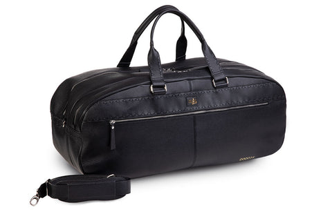 The BeeTennis Trieste bag is a black leather bag, sporty but elegant. It is designed for tennis and paddle but also for sport in general and for work. It is handcrafted in Italy with genuine quality leather and with a classic but modern design. It is a resistant and capacious tennis bag, it can contain up to 4 rackets and much more. It has 2 large central compartments, one of which is made with shockproof isothermal material lined to protect rackets or other technical material during transport. It's ideal for taking it to the office, the gym, the tennis court or on the go without having to carry a second sports bag. Elegant and multi-functional, it is the only tennis bag that combines sport and work.