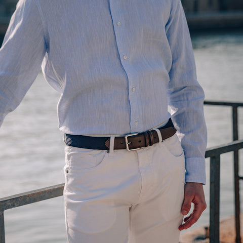 Introducing the Super Basic Belt, a versatile accessory that will take your casual style to the next level. Made from a tubular stretch Rayon, this belt is 100% Made in Italy, with superb craftsmanship and attention to detail. The belt tip is made of premium Italian leather, which is vegetable-tanned to ensure quality and sustainability.
