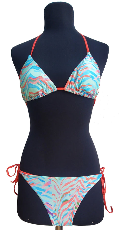Printed and smooth jersey made with GRS certified yarns .It fits comfortably every size and it pairs with a triangle bottom. Made in Italy, this design is available in three different colours.