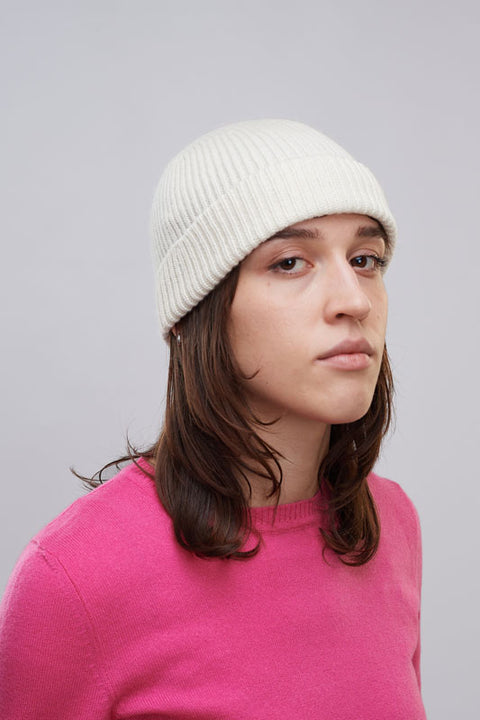 Medium fit ribbed cap. 100% cashmere.