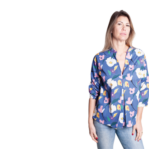 Top Quality Cotton woman's boxy fit shirt with mandarin collar and 3/4 sleeves 100% Made in Italy with Italian Fabrics.