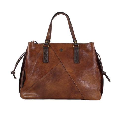 HAND BAG WITH LEATHER STRAP. CLOSED BY ZIPPER. 2 INTERNAL POCKETS AND 1 CLOSED WITH ZIP. FULL GRAIN ITALIAN VEGETABLE TANNED CAW LEATHER PAINT BY HANDLE USING PURE ANILINE . POLYESTER AND COTTON INSIDE LINING. OLD BRASS FITTING
