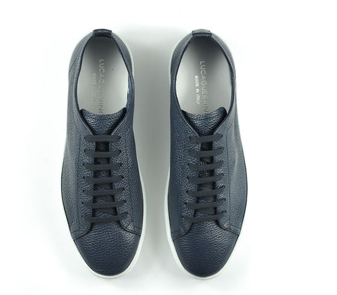 Casual shoes in soft calf pebble grain leather with a particolar \"Strobel processing\".
