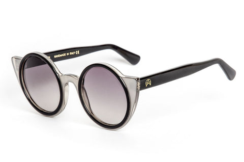 \"Sunglasses made entirely in Italy. CR-39 lenses, UV protection, filter the light very well without being too obscuring. Black and grey frame and soft grey lenses.  Mazzucchelli frame, very light and comfortable.