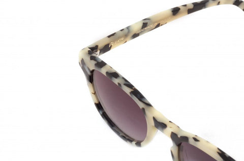 \"Sunglasses made entirely in Italy. CR-39 lenses, UV protection, filter the light very well without being too obscuring.  Speckled frame and soft grey lenses. Mazzucchelli frame, very light and comfortable.