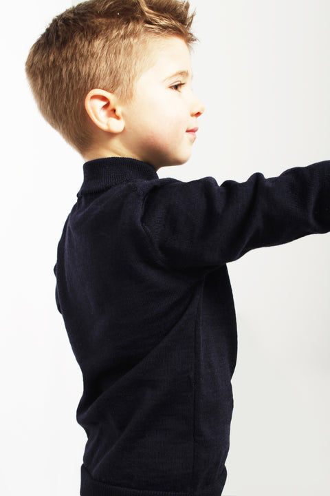 An indispensable garment, turtleneck model with comfortable ribbed collar. This sweater is worked in stockinette stitch and is made with the best Pure Merino Wool. Hypoallergenic and thermally insulating, it helps to maintain a stable level of humidity and body temperature between the fabric and the skin, according to studies conducted by the global wool authority, the pure merino component is even therapeutic for children suffering from eczema.